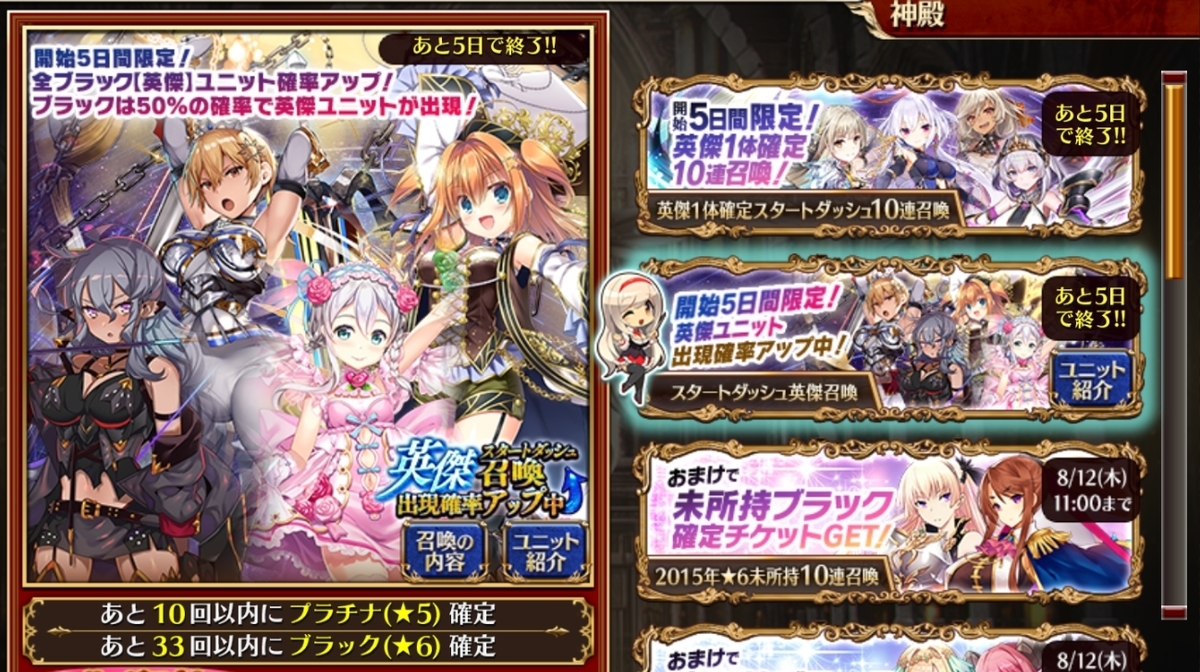開始5日以内、または英傑ガチャ開催中であれば、神聖結晶はスタートダッシュ英傑召喚に使いましょう。