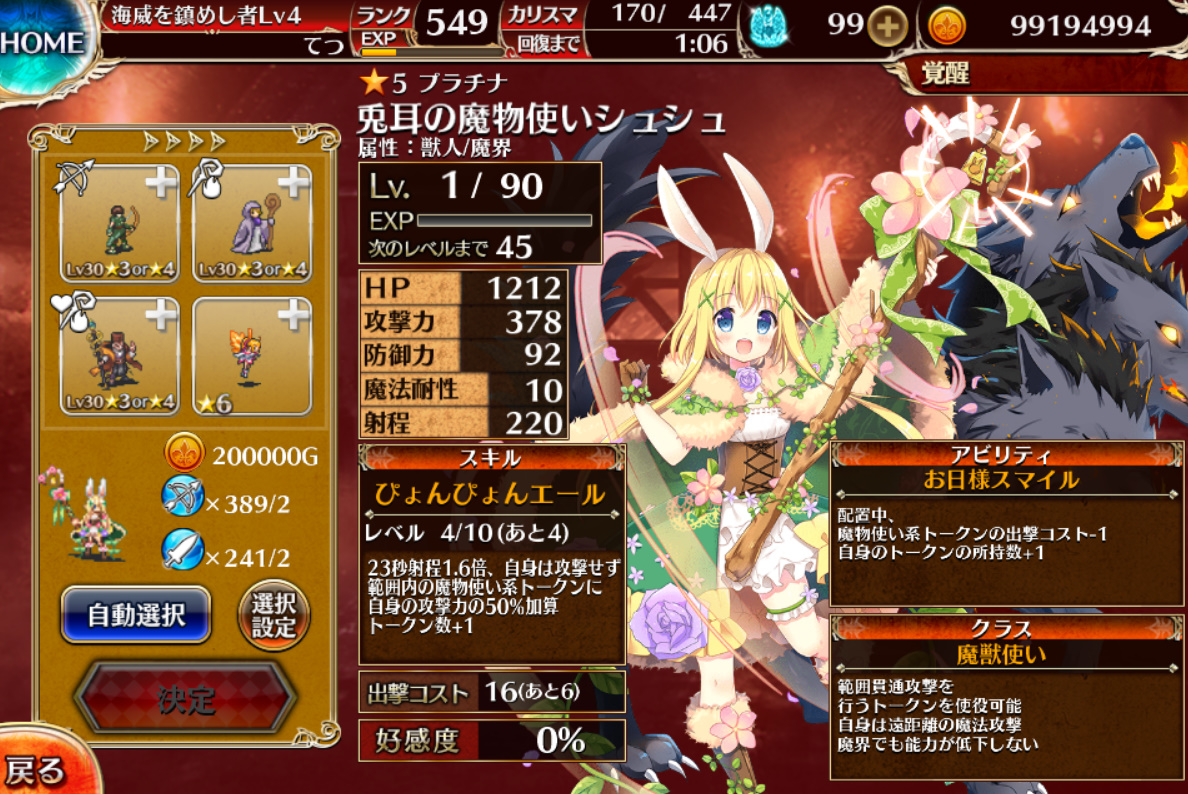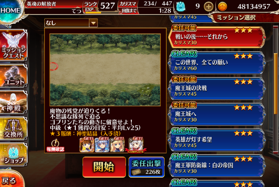 ランクは王子の能力にも直結するので、序盤はコツコツ上げていくのが大切。基本はストーリーの最前線を委任するのがおすすめで、消費カリスマ半減のタイミングで集中的に上げるとさらにお得です!