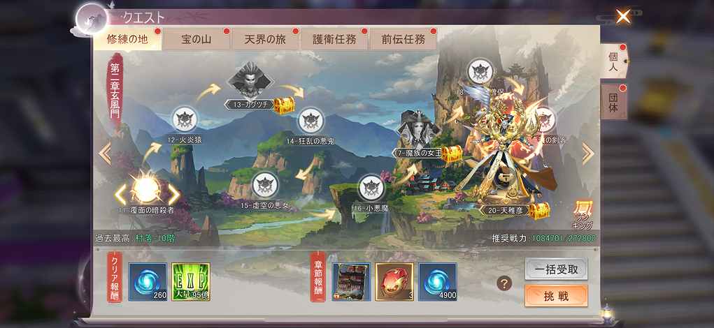 プレイヤーは”天命を背負う英雄”として、天界と人間界を行き来しながら壮大なストーリーを仲間と一緒に進めていきます。
