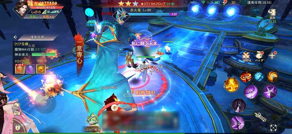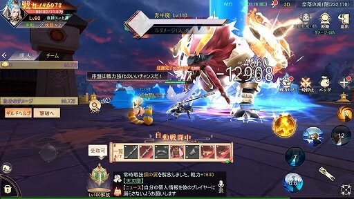 「自動戦闘」アイコンをタップするか、クエストウィンドウで進めたいクエストを選ぶだけで、あとはゲームが自動でどんどん進めてくれます。