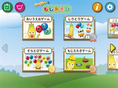 画面のデザインはとてもシンプル。大きなボタン、わかりやすいアイコン、直感的なレイアウトで、小さなお子さまでも迷わず操作できます。「あいうえお」ボタンをタップするだけで目的のゲームに移動でき、親が付きっきりでなくても一人で遊べるのがうれしいポイントです。
