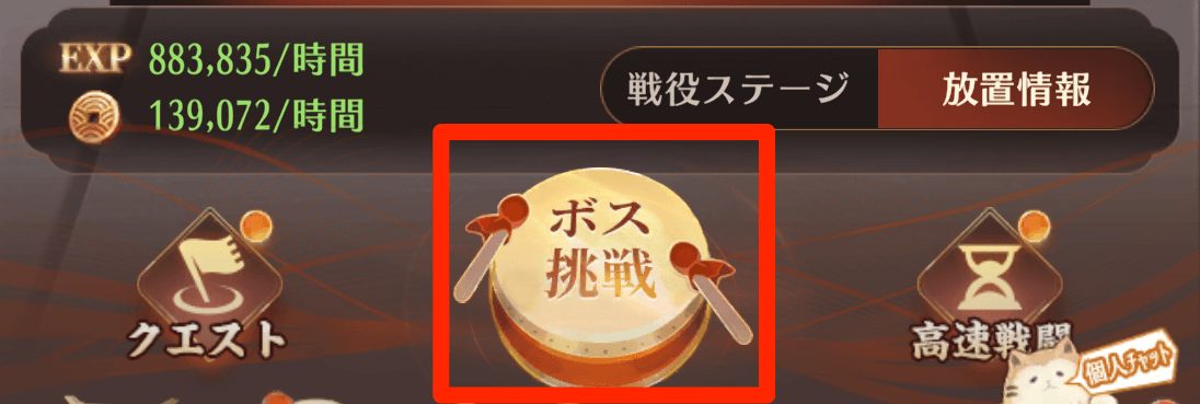 まずはボスに挑戦してどんどんステージを進めていきましょう!放置少女の基本は「放置しながら戦闘を自動で進めること」。ステージが上がるほど放置報酬も豊かになっていきます。