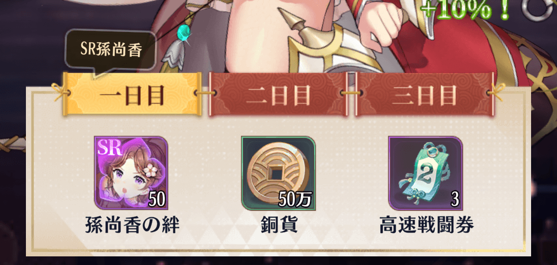 | ステージ4 | 任務(目標/デイリー)・倍速・訓練所 | ステージ16 | 鮑三娘・董白入手 |