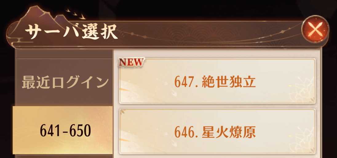 サーバー選びは「NEW」のついた最新サーバーを選ぶのがイチオシです!新しいサーバーなら既存プレイヤーとの差が小さく、闘技場などで上位に食い込みやすくなります。