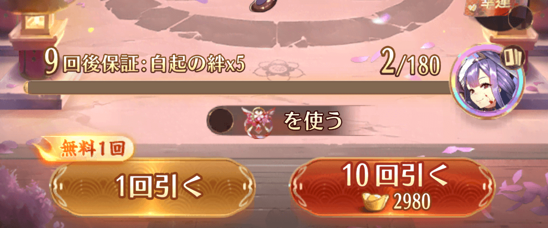 - 10連ガチャ1回 = 2,980元宝