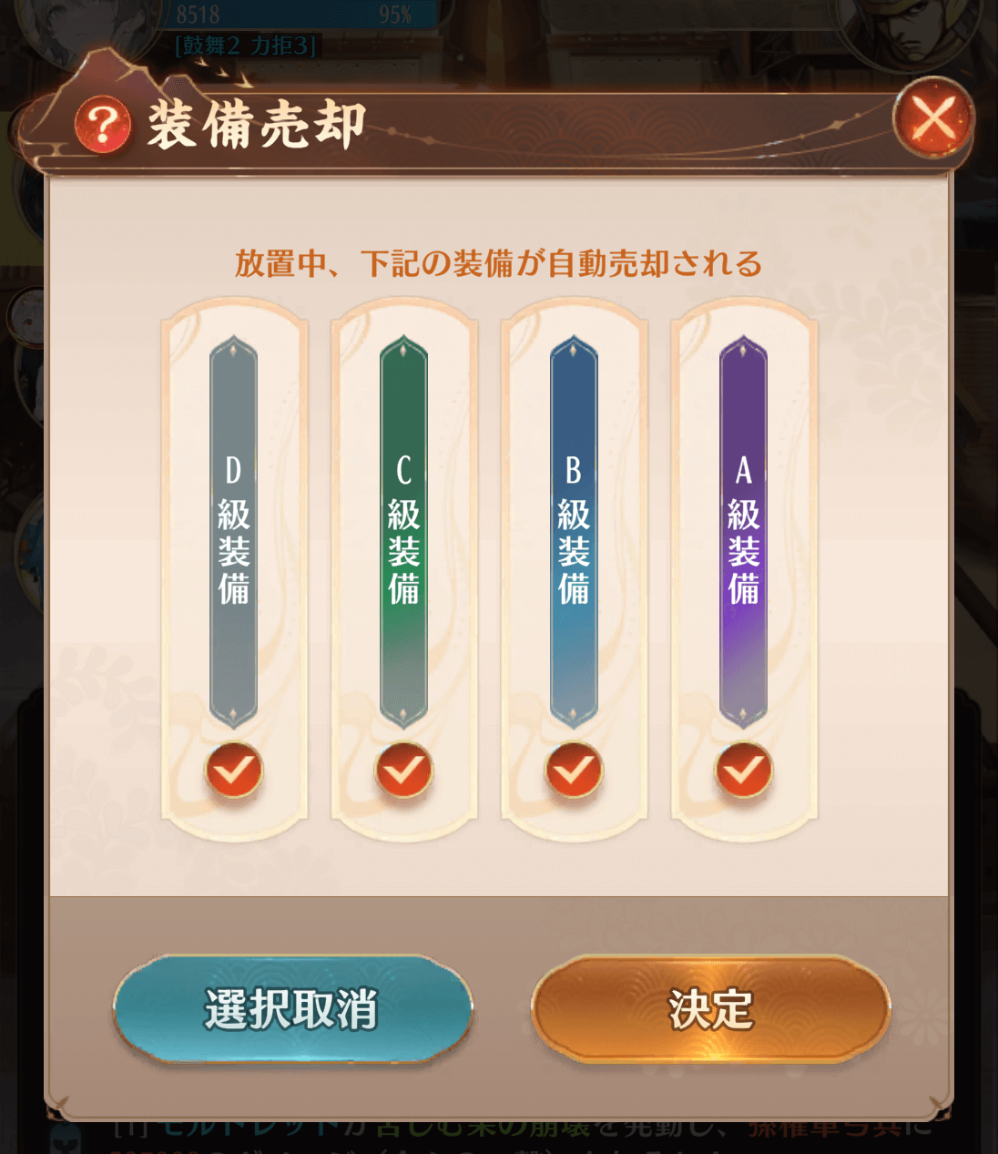 放置する前に装備売却設定をOFFにしよう