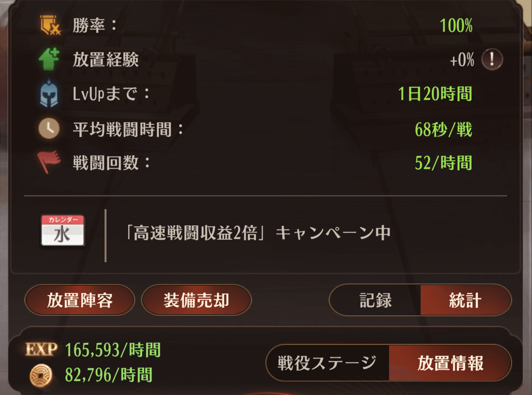 - 平均戦闘時間60秒以内・勝率100%を目指す → これが放置効率の最適ライン