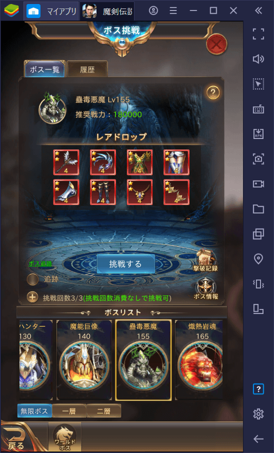 それでも装備ランクが低いと感じたら、ボス戦に挑んでみましょう。一定確率で高ランクの装備をドロップするので、一気に戦力アップが狙えますよ!