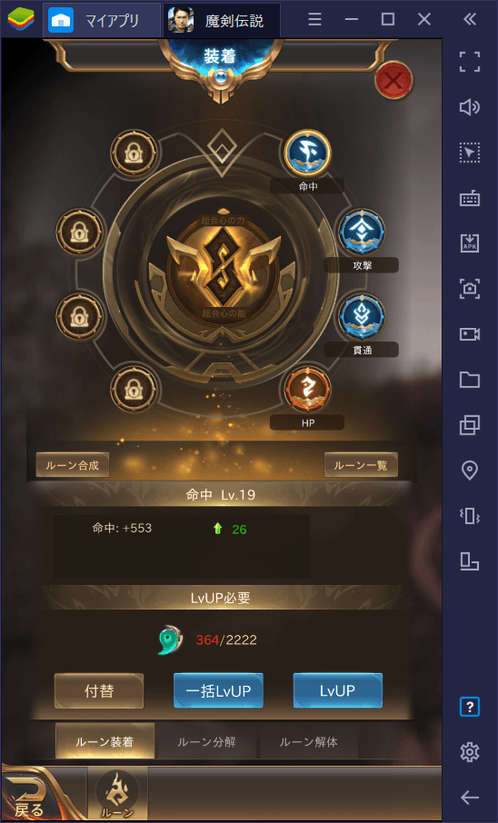 また、装備品に装着するルーンを強化するとステータスがさらにアップするので、手に入れたら積極的に装着していきましょう。