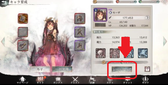 レベル上げ、スキル強化、装備強化が基本ですが、序盤はリソースが限られているので、活躍するキャラに優先投資しましょう。装備もこまめに付け替えたり強化したりするだけで戦力が大きく上がります。特に武器や防具はステータスに直結するので、小さな強化の積み重ねが攻略を安定させるんです。