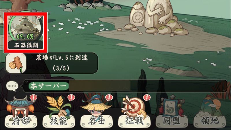 次の時代へ進むには、プレイヤーレベルを上げる必要があります。人口と領土が一定数以上になると自動的にレベルアップするので、画面左上のアイコンから必要数をしっかり確認しておきましょう。