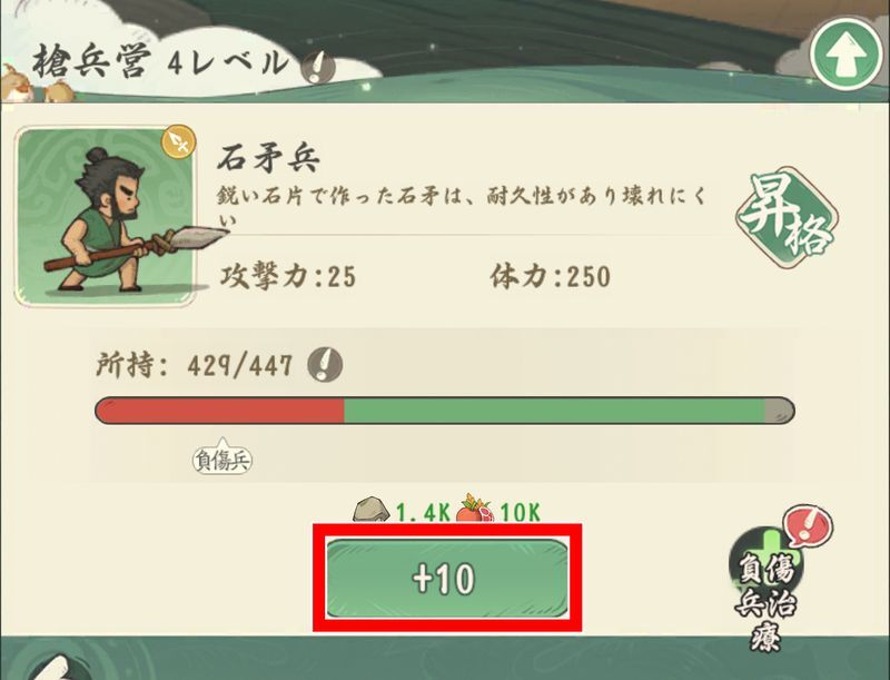 兵舎施設(弓兵舎・槍兵舎など)の強化方法: