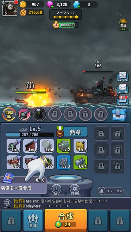 このゲーム攻略で超重要なのが、戦艦のパーツを生成する「合成台」のレベルアップです。合成台のレベルを上げることで、より高性能なパーツが作れるようになり、戦艦の強さに直結します。