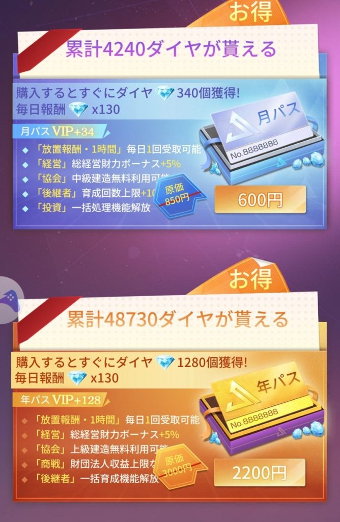 「まずは1カ月遊んでみようかな」という人には月パスがぴったり。毎日ダイヤが130個もらえるので、合計で4,240個ゲットできます。