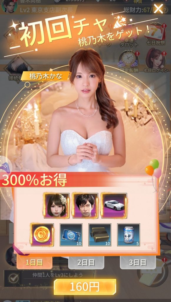 初回限定で160円で3日間のお得アイテムやキャラクターがゲットできます。値段も安いので、とりあえず始める人におすすめですよ。