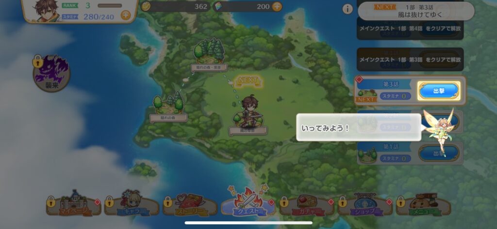 メインストーリーを進めて機能を解放することが何より大切。これが序盤攻略の第一歩です。
