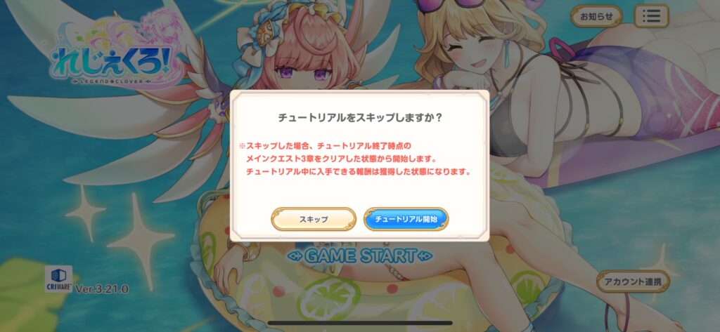 リセマラをスキップして始めるのもぜんぜんOK。序盤配布のSRキャラやイベントで入手できるキャラを育成すれば、十分ストーリーは攻略できます。