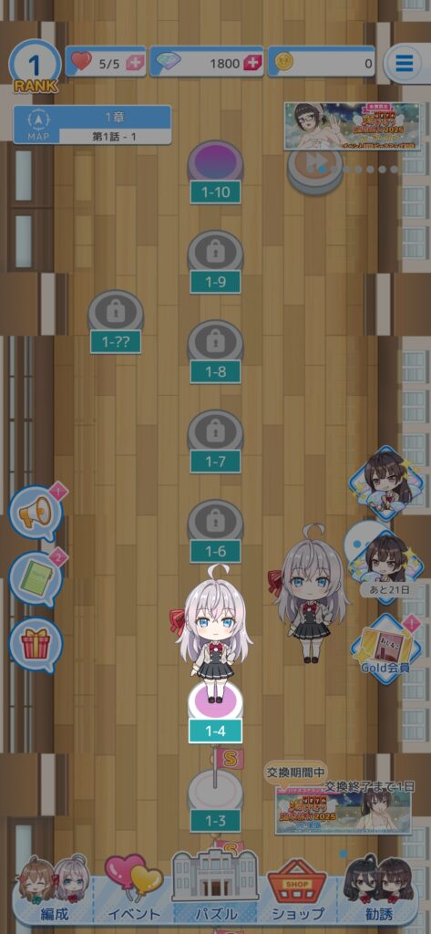 パズルをクリアして得られる経験値やアイテムを使えば、キャラクターをどんどん強化できます。衣装チェンジ機能もあるから、推しキャラを自分好みに育てていく楽しさが広がるんです。キャラクター育成の自由度が高いから、愛着を持って育てられるのも魅力。推しキャラにとことん愛を注げる、ファンには嬉しいシステムですね!