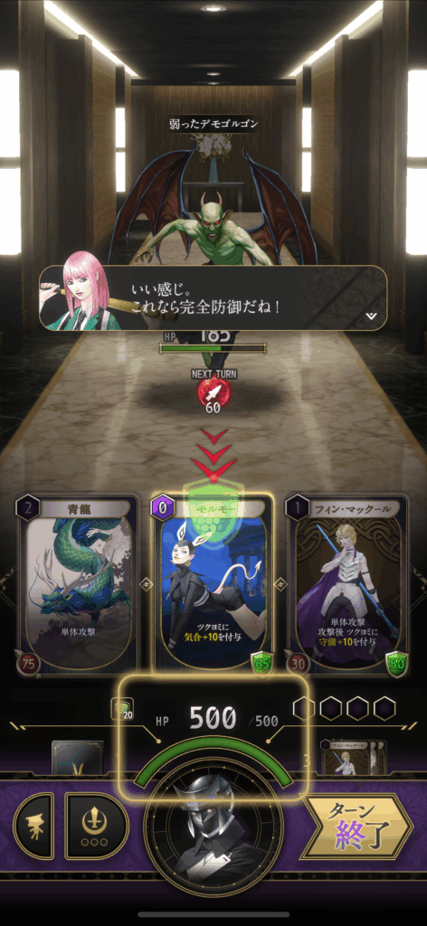 このゲーム、回復できる場面がめちゃめちゃ少ないんです。だからこそ、HP管理が生死を分けます。防御系カードが手札にない状況を作らないようにしながら、常に手札の構成を意識してプレイしてくださいね。