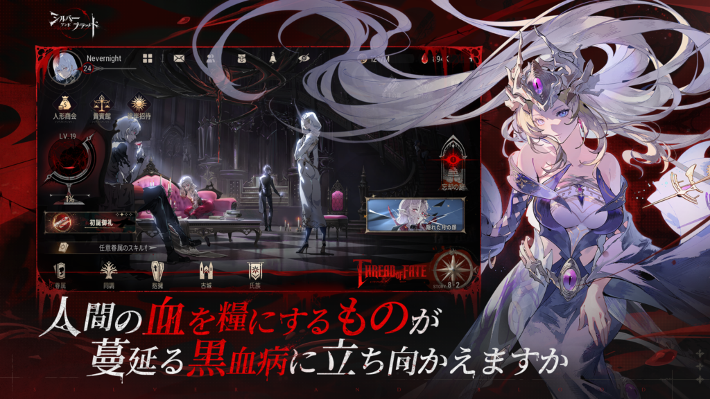 『シルバー・アンド・ブラッド』は、吸血鬼やエルフなど様々な種族が織り成すダークファンタジーの世界が舞台。プレイヤーはいずれかの勢力に所属して、拠点を育て、資源を管理し、英雄を強化しながら領地を広げていきます。戦略をどう立てるか、どの英雄を育てるかといった選択がすべて物語と勢力の行く末に影響する——それが本作の最大の魅力です。