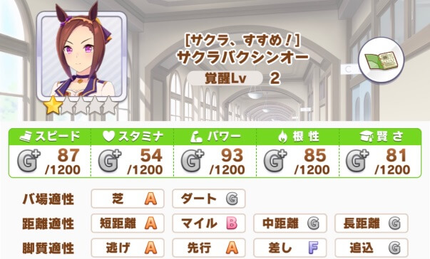 初心者に一番おすすめしたい育てやすいキャラが『サクラバクシンオー』です!