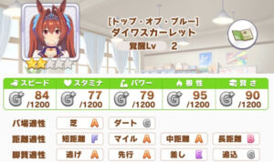 『ダイワスカーレット』はマイル〜中距離を得意とするウマ娘です。